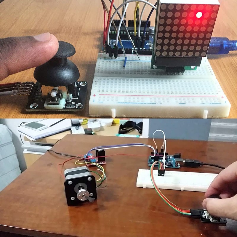 - Configuration: The joystick combines two analog potentiometers and a digital switch, just connect it to two analog inputs and the robot can listen to commands with the X, Y control