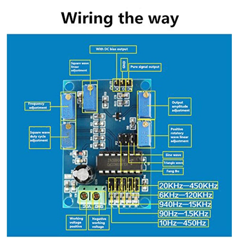 - This module is designed for the frequency range commonly used, adjustable from 5 stalls, Can produce from 10Hz ~ 450KHz low distortion of the sine wave, triangular wave, square wave pulse signal.
