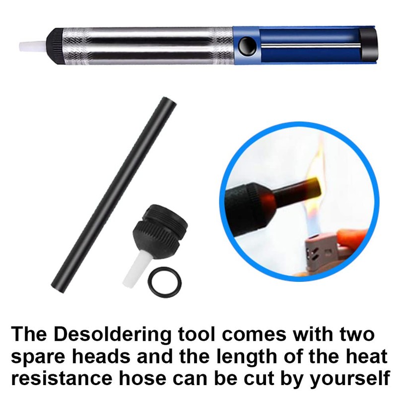 - ✅Package Content:1 x Soldering Tip Cleaner, 1 x Brass Ball Wire, 1 x Desoldering Wick, 1 x Spare Nozzle, 1 x Heat Resistance Hose, 2 x Sponge
