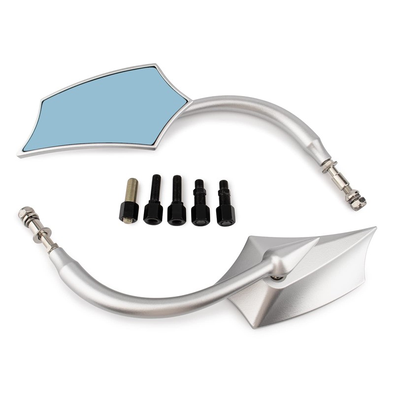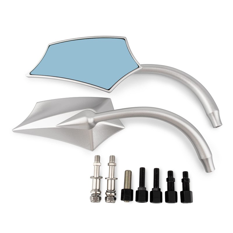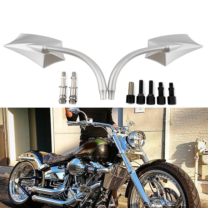 - Package Included - 1 Sets (Left & Right) Chrome side mirrors;Comes with 2 x 10mm adapters ; 2 x 8mm adapters ; 1 x 10mm Reverse counter-clockwise adapter;2 x adapters for harley