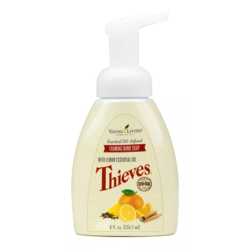 Thieves Jabón Espumoso para Manos; limpia, protege y humecta la piel con la mezcla de aceites naturales Thieves, Limón puro, Naranja, Áloe, Ginkgo Biloba, y Vitamina E.