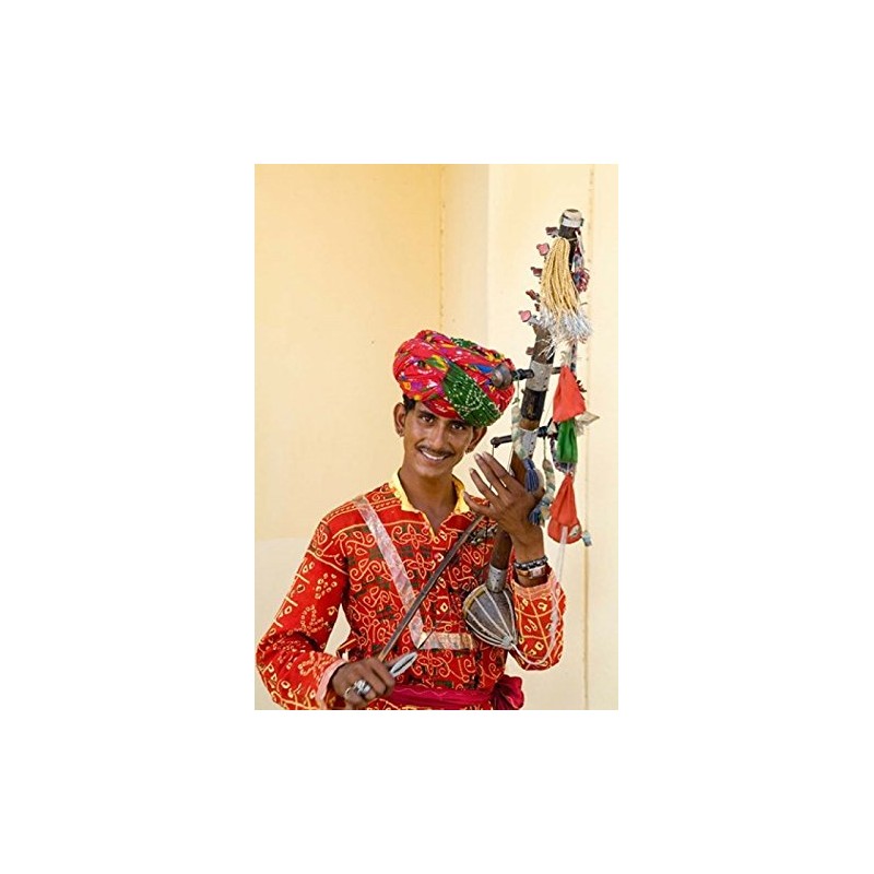 Young Man in Playing Old Fashioned Instrument Called a Sarangi Agra India Poster Print by Bill Bachmann (18 x 24)