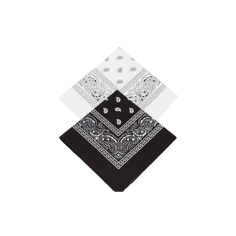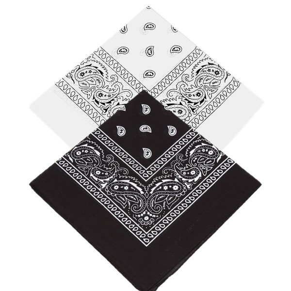 Young Mania 100% Cotton Bandanas Jumbo Size 55cm X 55cm Multi-pack (Black and White (1ea), Pack of 2)