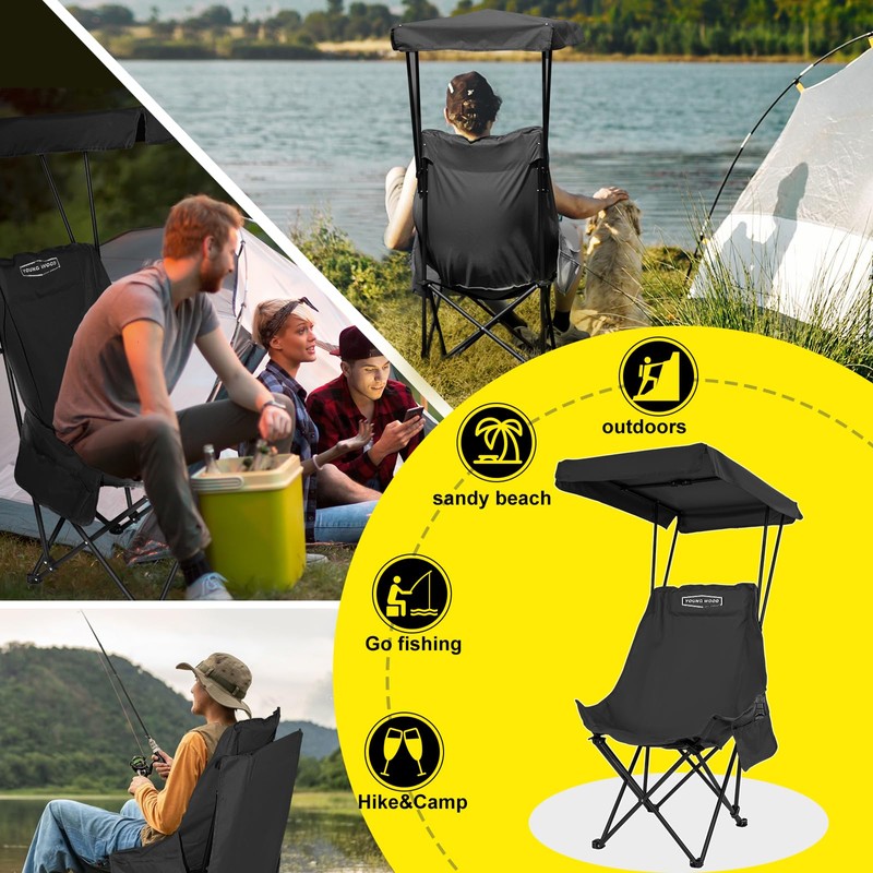 YOUNG WOOD Portable Camping Chair Beach Chair with Shade Canopy, Fold Lightweight Oversized for All, Easy to Open and Close Without Installation, Side Pocket Design for All Outdoor Activities