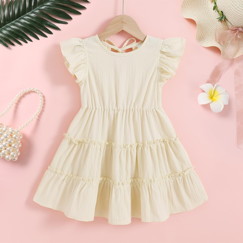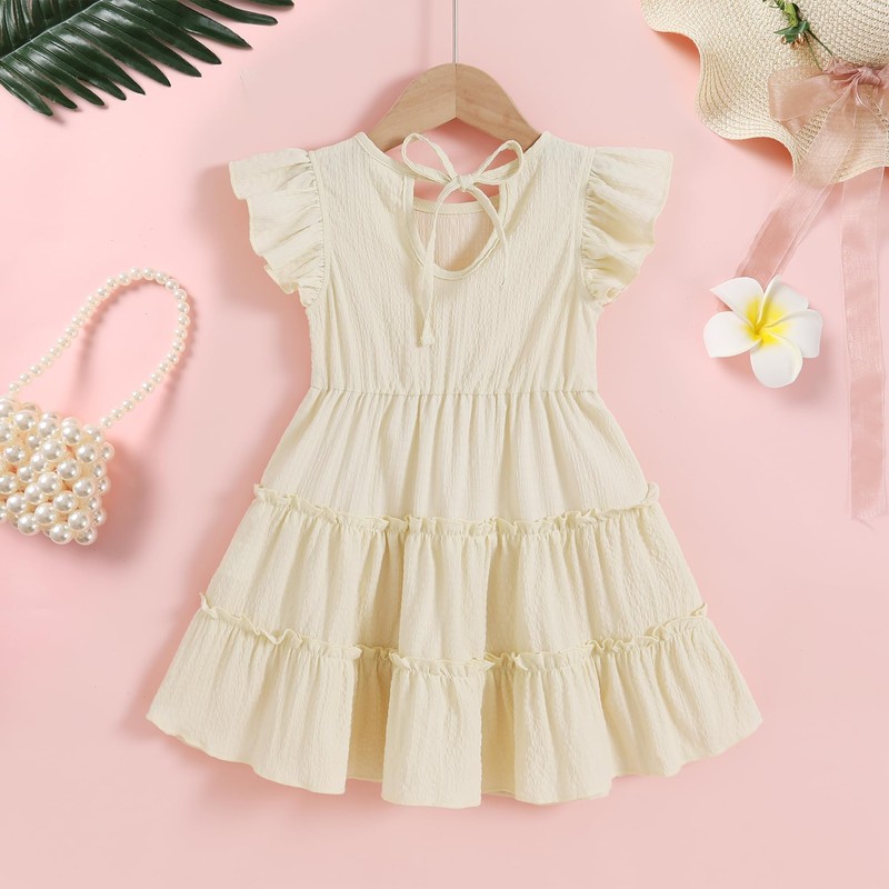 YOUNGER TREE Toddler Dress Baby Girl Summer Clothes Ruffle Sleeve Smock Beach Boho Dresses Sundress (Beige, 18-24 Months)