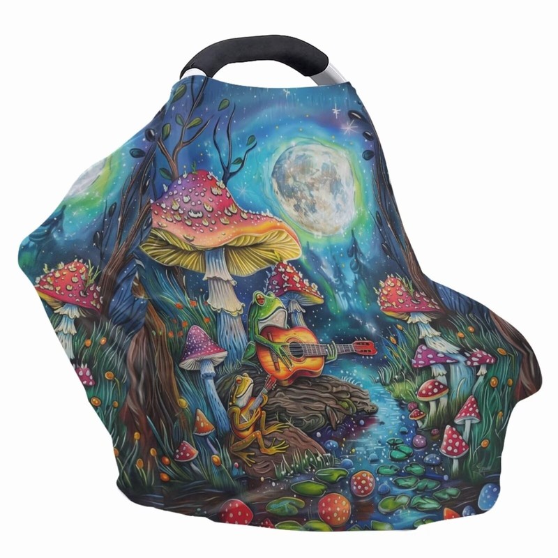 Youngerbaby Frog Mushroom Baby Car Seat Cover Nursing Breastfeeding Scarf Shawl Stretchy Infant Carseat Canopy for Stroller High Chair Shopping Cart Newborn Shower Gift Boy Girl Necessities