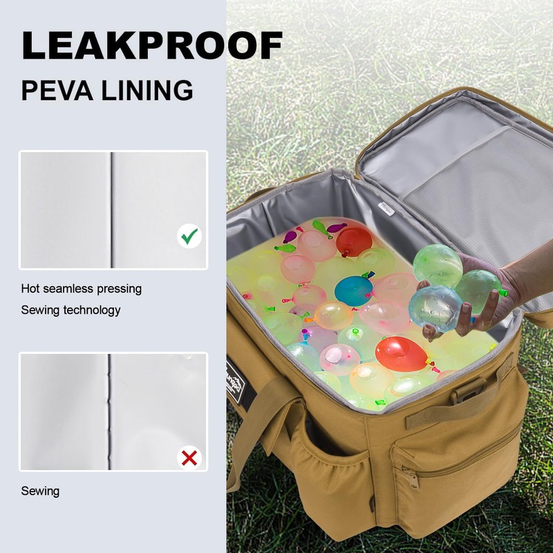 - Exceptional Durability: The exterior is made of durable rip-stop 600D Oxford materials, enhanced with a layer of waterproof PVC for added protection. Our cooler bag comes with reinforced double-stitched carry options. We've reinforced all the pick-up points to ensure superior strength and reliability. This cooler bag can handle more weight than you'd prefer to carry, making it perfect for all your adventures.