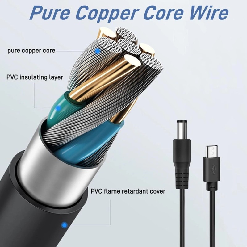 - 【Compact Specs】5V 1A,include 1 micro head and 1 5.5X2.5mm DC head,Cord length optimized at 70CM/2.1FT for hassle-free charging.