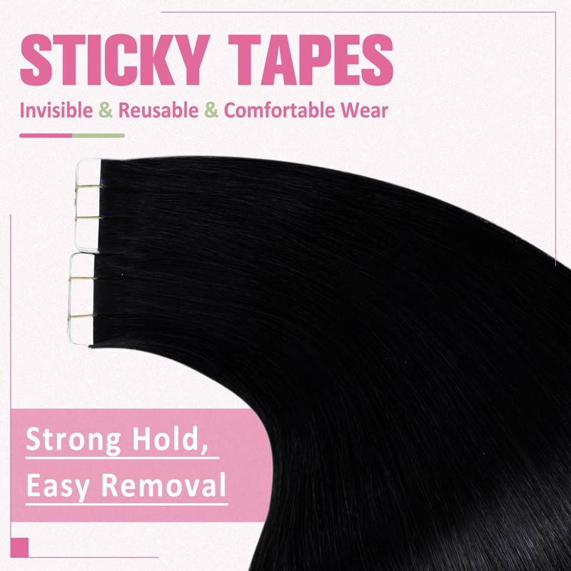 - YoungSee Authenticity: tape extensions real hair black are made from real human hair, is silky and invisible and gives you the most natural look. The lightweight design of the band ensures maximum comfort when you wear it all day