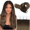 YoungSee Tape Extensions Real Hair 55 cm Tape in Balayage Extensions Real Hair Skin Weft Hair Extension Real Hair Tape Ombre Dark Brown with Caramel Blonde 20 Pieces 50 g