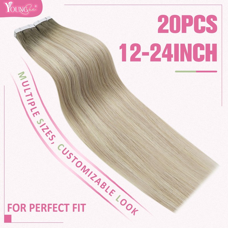- Hair Authenticity: Tape in hair extensions human hair is made from real human hair, silky and invisible, giving you the most natural look. The tape's lightweight design ensures maximum comfort when you wear it all day
