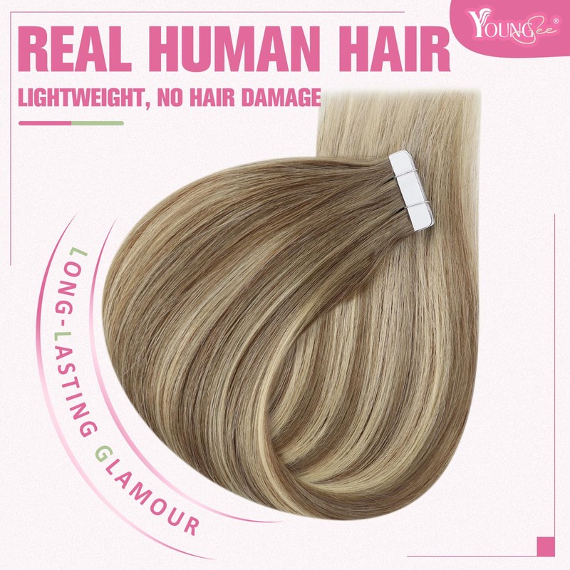 - Seamless transformation: YoungSee Tape in Extensions Human Hair are made from Remy Human Hair, silky-soft to the touch, not easy tangled, offering a natural, polished look which helpful to turn heads. Lightweight, providing a comfortable wear all day long