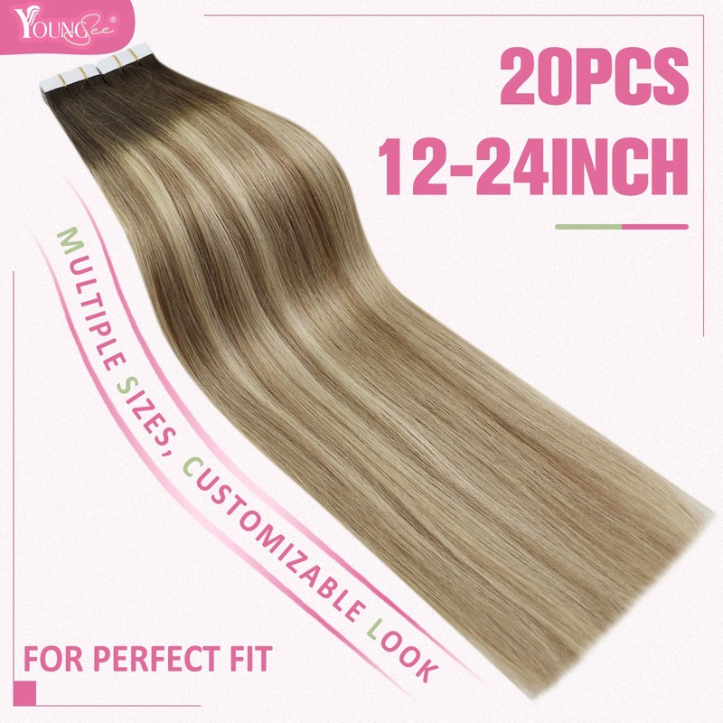 YoungSee Tape in Human Hair Extensions Balayage Invisible Tape in Hair Extensions Human Hair Balayage Brown with Blonde Tape in Extensions Real Human Hair 20Inch Ombre Tape Hair Extensions 20pcs 50g