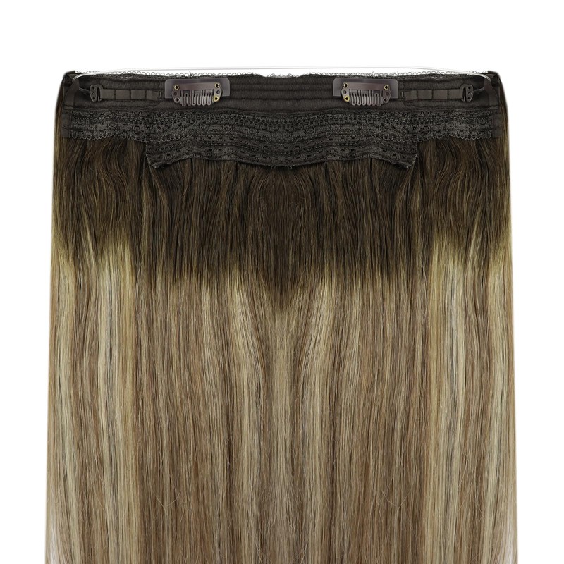 YoungSee Wire Hair Extensions Brown Ombre Fish Line Hair Extensions Human Hair Dark Brown Ombre Light Brown with Blonde Headband Extensions Human Hair Long Lasting Hair Extensions 16 inch 80g