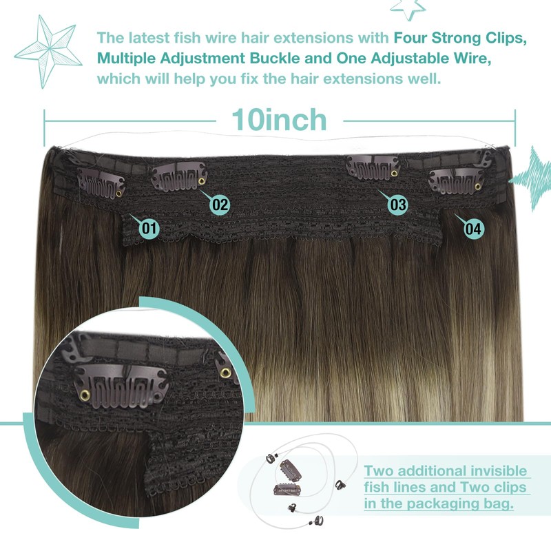 - [Advantages]: YoungSee Wire Human Hair Extensions balayage offer a secure fit with a specially designed wire hair extension real human hair that stays in place and provides a natural look. Unlike traditional wigs, these wire extensions require no professional installation skills and can be easily attached to your hair, saving you time and effort.