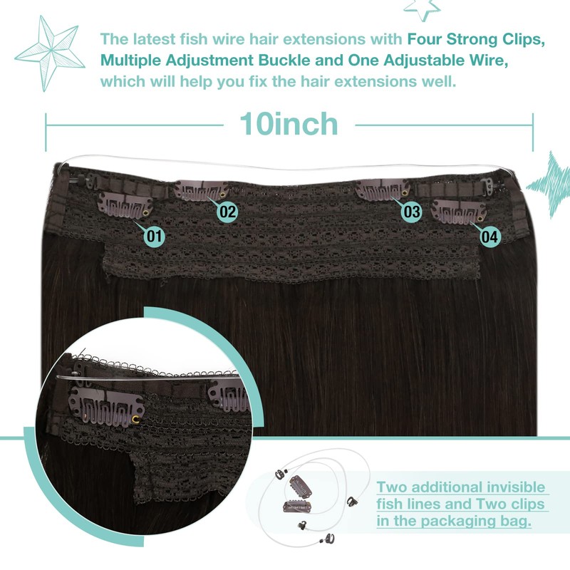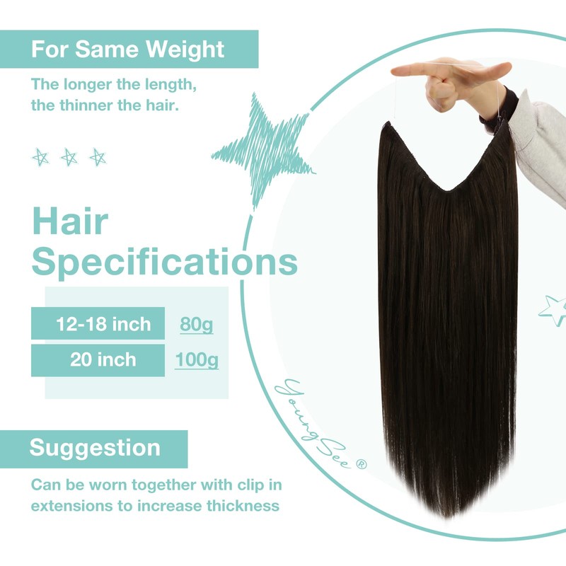 - 【Invisible Transparent Wire & Fixed Clips】 Youngsee wire human hair extensions brown can blend perfectly with your hair by the adjustable invisible transparent wire and the clips on the lace weft, double fixed, more stable. The replacement fish line and clips are included in the package.