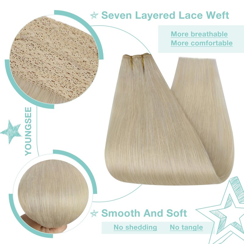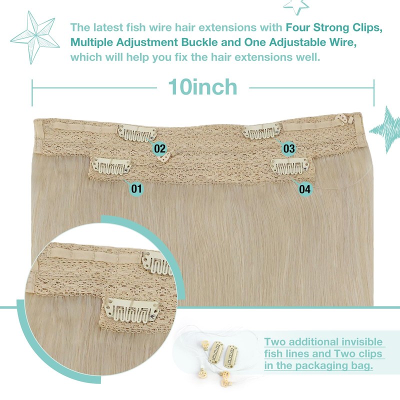 - 【Invisible Transparent Wire & Fixed Clips】 Youngsee wire human hair extensions real blonde can blend perfectly with your hair by the adjustable invisible transparent wire and the clips on the lace weft, double fixed, more stable. The replacement fish line and clips are included in the package.
