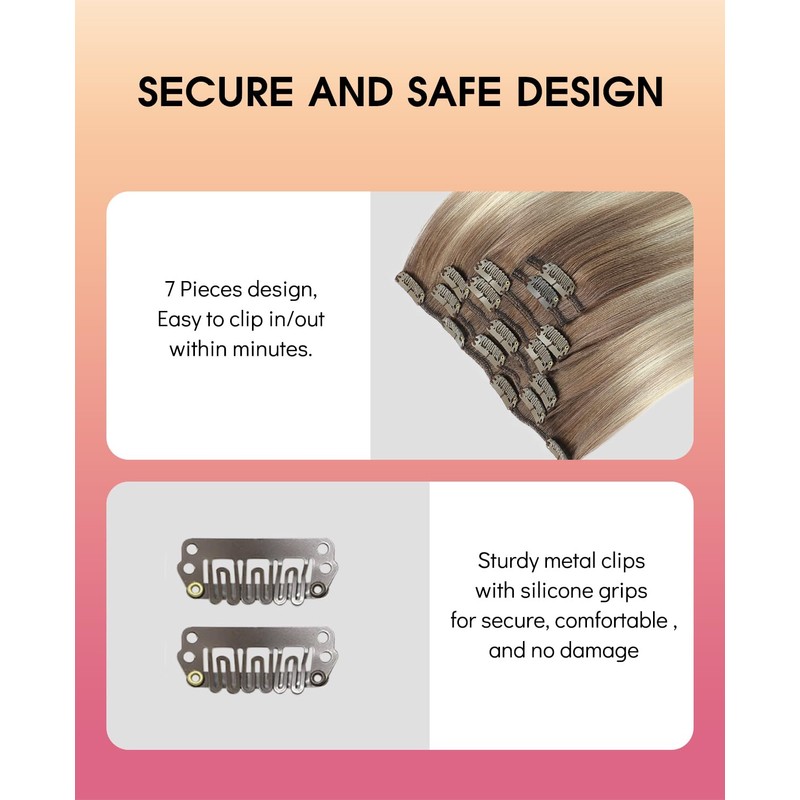 - 【High quality real hair】Youngsmile clip on hair extensions are made of 100% real hair, which can naturally blend with your hair. The hair is soft and smooth, and will not fall off. Clip on hair extensions feature soft lace double weft threads that enhance comfort and fit snugly against the head. The hair clip design seamlessly matches the color of your hair at the roots, creating a perfect blend that is easy to install and remove
