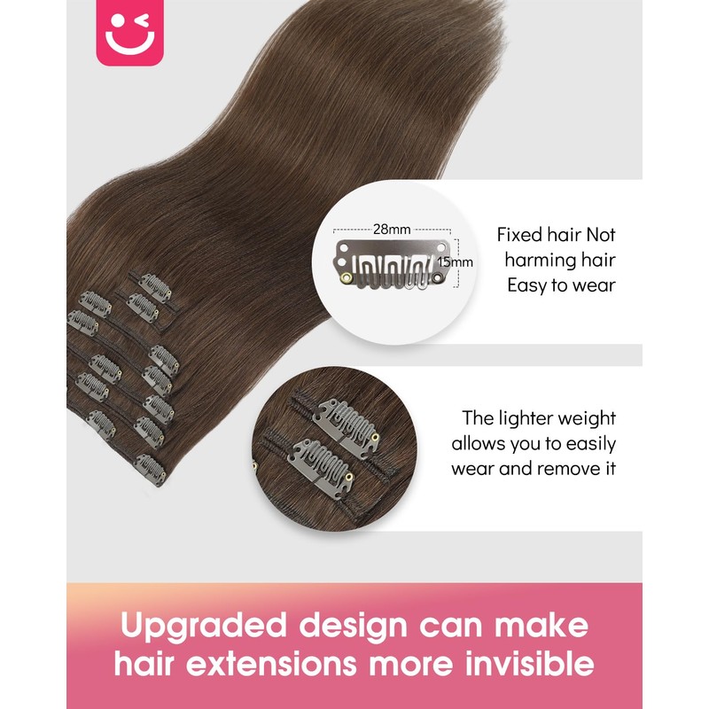 - Secure and Safe Design:Youngsmile 7Pcs/Set clip in hair extensions human hair(14-22inch:120g),Sturdy metal clips with silicone grips for secure attachment, comfortable wear, and no damage to natural hair, ideal for DIY styling. Easy to clip in/out within minutes