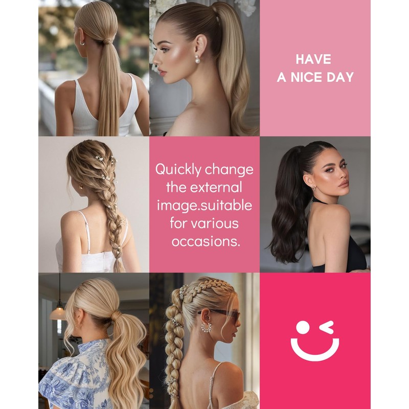 - Easy to Wear & Long Lasting Wear: Wrap around ponytail hairpieces, easy to wear and take off by yourself, no damage to your own hair. With the magic paste design, you don’t need to adjust it frequently. The ponytail extensions can hold into one place, it is convenient and can save you time