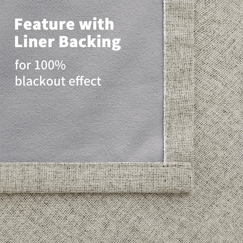 - 100% Blackout Curtains: Our linen textured blackout curtains with liner, can completely block out sunlight and create the ambiance of night. Darker and quiet environment make you will have a good sleep, full of energy and happiness in daily life. Totally protect your privacy.