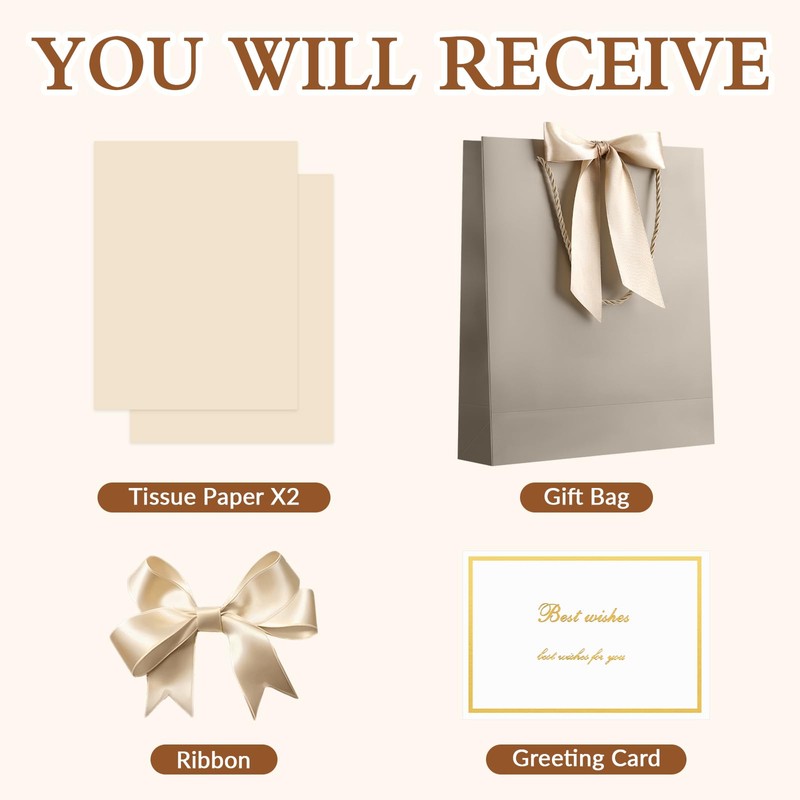YoungTree Gift Bag, 2PCS Large Gift Bags with Ribbon and 2 Greeting Cards 4 Tissue Papers, Paper Gift Bag with Handles, Birthday Gift Bags,Present Bags for Wedding Party,Mothers Day(Champagne