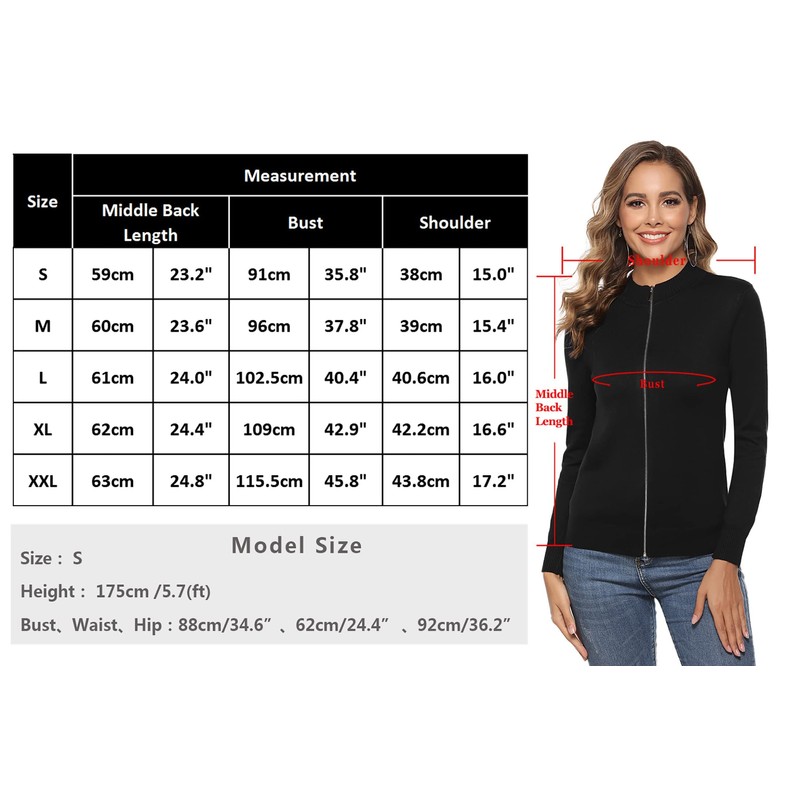 L------Middle Back Length:61cm/24.0"------Bust:102.5cm/40.4"------Shoulder:40.6cm/16.0"