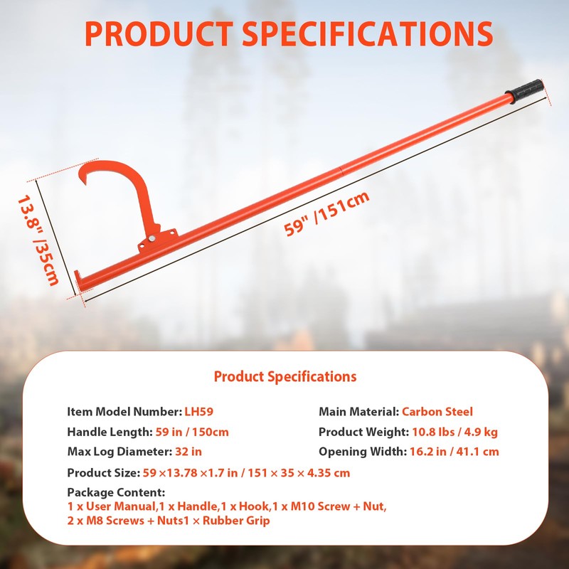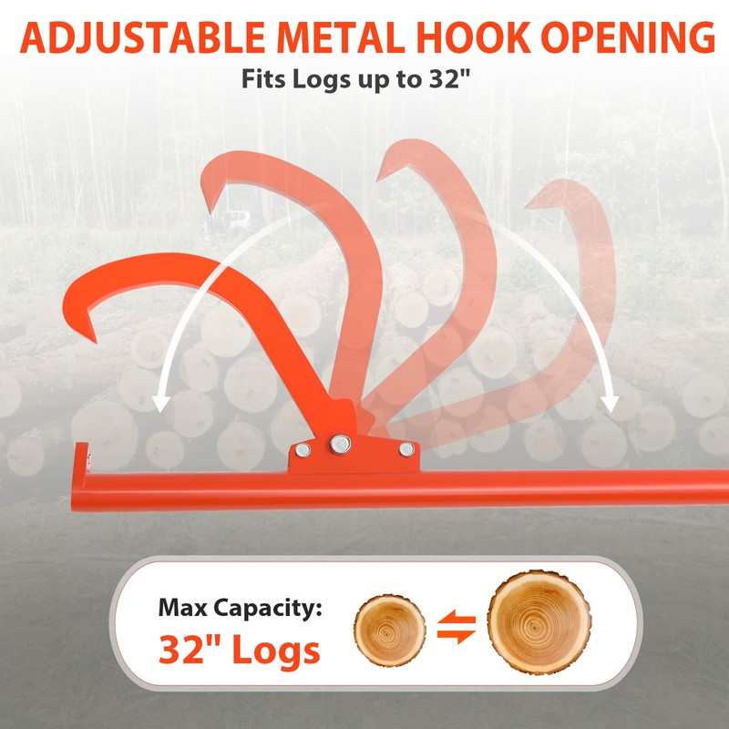 - Convenient Detailing: The log lifter has an adjustable angle hook that can hold up to 32” diameter wood. Rubberized handle on one end of the pole for a more comfortable grip.
