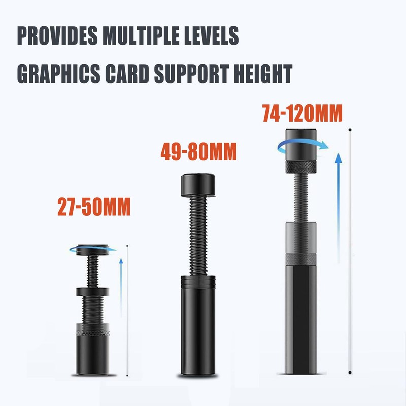 - Screw adjustment: The graphics card bracket adopts a telescopic screw design, which can provide height support between 27mm-120mm. We can choose and adjust according to the actual situation.