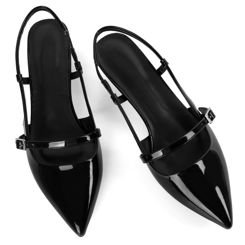 Younton Slingback Kitten Low Heels for Womens Pointey Toe Pumps Mary Jane Shoes Women Wedding Shoes 1.4 in Black Patent Leather US Size 7.5