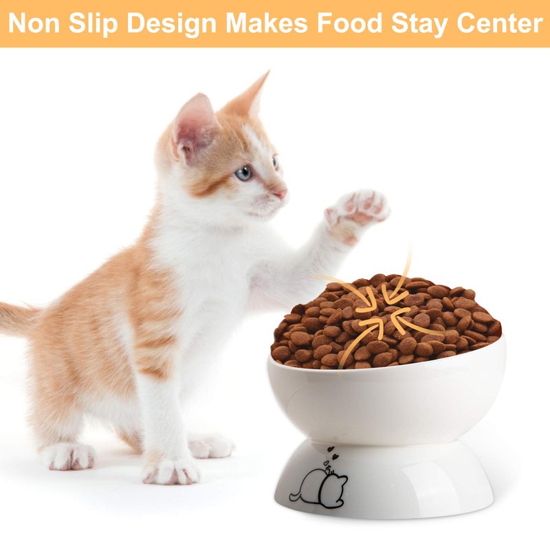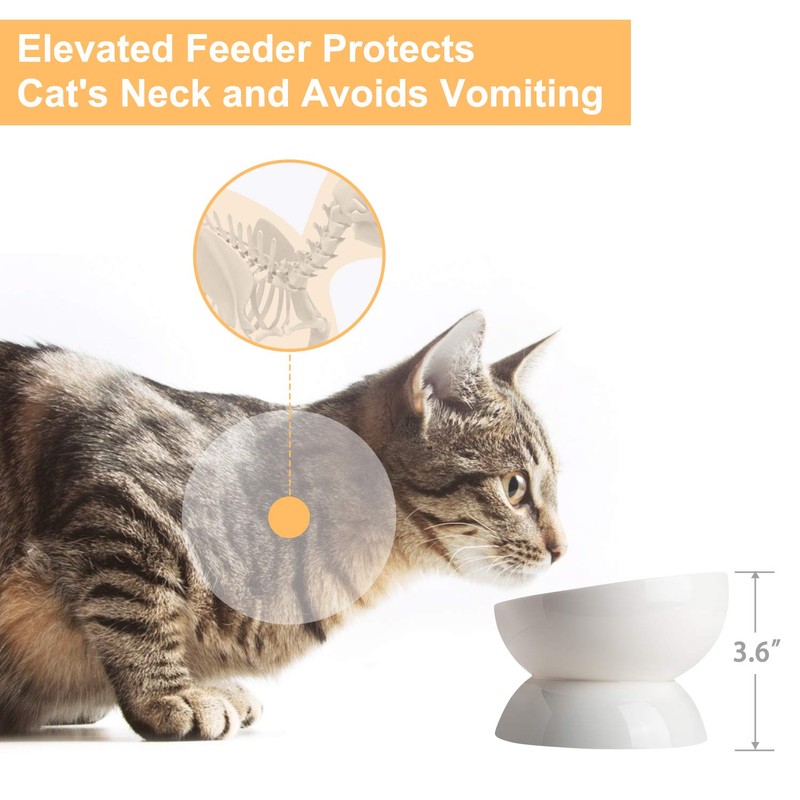 - Protects cat's neck: Raised cat bowls stand makes the bowl suitable for your kitten regardless of shoulder height and appetite. Elevated Feeder Protects Cat's Neck when using.