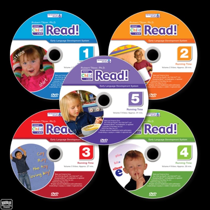 ---------------------------------------------------------------------------------------------------------------------------------------------------------------------------------------- Your Child Can Read! 5-DVD Set The Your Child Can Read! series is the follow-up to Your Baby Can Learn! Phonetic patterns of words are highlighted. In addition, there are "fast reading" segments where the words are presented very quickly. This is an entertaining series with music videos and interactive segments throughout. Contains: 5 Your Child Can Read! DVDs For ages 3 months to 5+ years. - Distributor authorized by Infant Learning Company |
