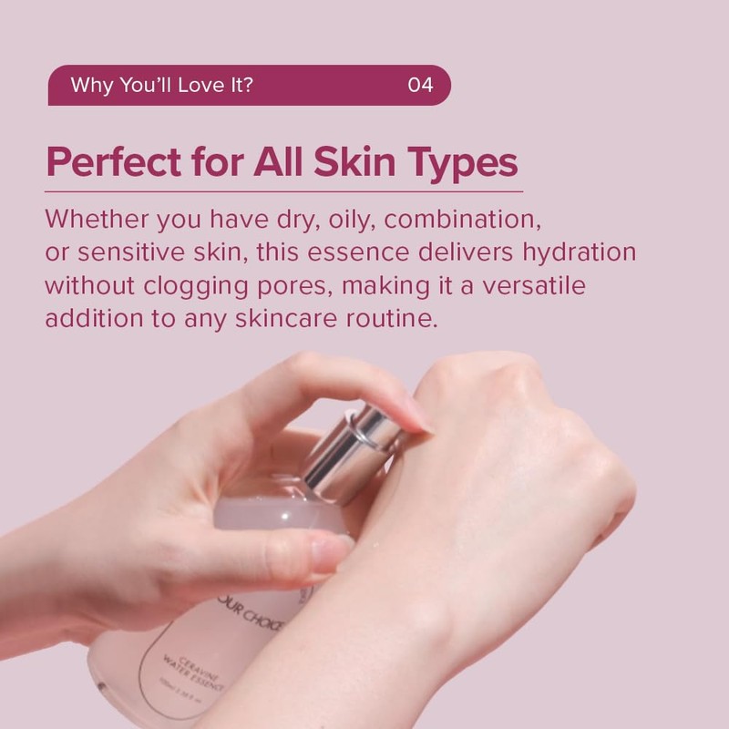 YOUR CHOICE CERAVINE WATER ESSENCE – Ultra-Lightweight Hydration & Skin Barrier Support – Fast-Absorbing, Non-Greasy Face Essence for Deep Moisture & Radiance – EWG Safe & Non-Comedogenic (100ml)