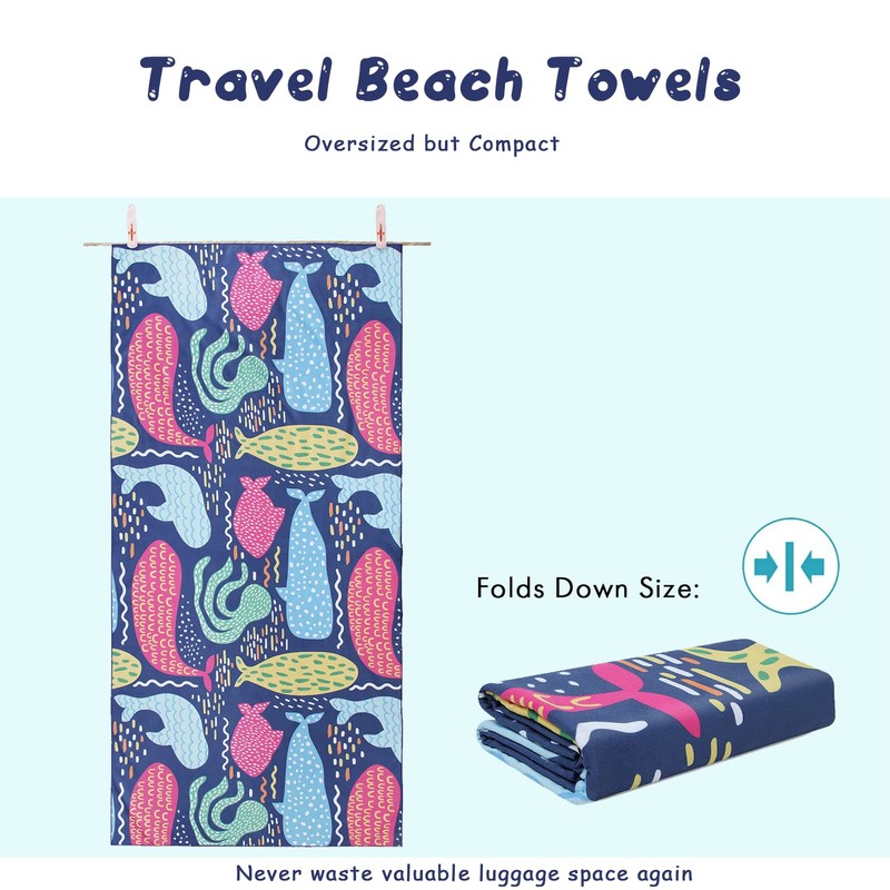 - 🟢TRAVEL BEACH TOWEL PERFECT FOR VACATION - At least 4 times thinner than the terry towel with a same size. Say goodbye to those bulky, unwieldy, space-hogging towels of the past! Super space saving and easy to stuff it into your suitcase or backpack. They’re the perfect COMPACT, LIGHTWEIGHT and QUICK DRYING solution for travelers need to bring towels with them