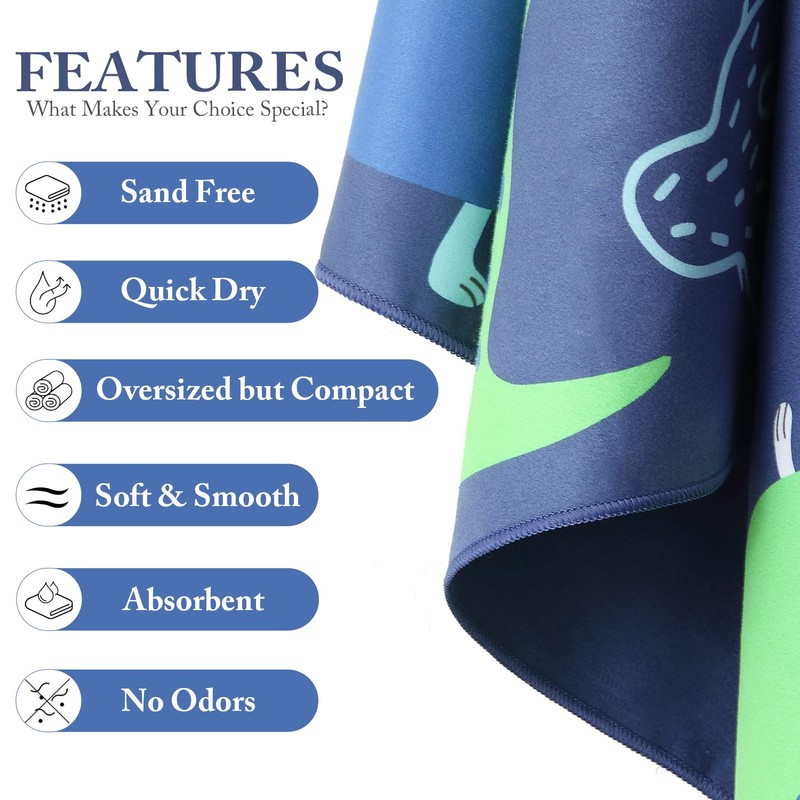 - 🔵QUICK DRY BEACH TOWEL – Say goodbye to damp and stinky! Quick dry material dries 3 times faster than a normal traditional towel! Our towels have a hook that allow you to attach your towel to virtually anything to dry. A COMPACT beach towel includes travel accessory pouch, you can pack it up without getting everything else wet