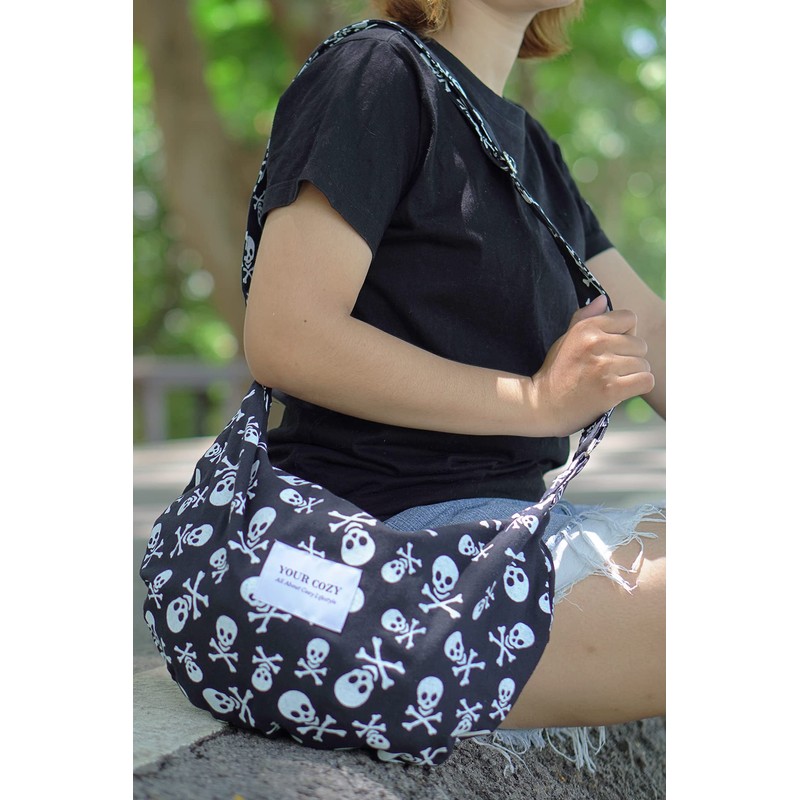 YOUR COZY Women's Sling Crossbody Bags Large Shoulder Shopping Hobo Bag Handbag Top Zip Bags Handmade Messenger Bag, White Skull