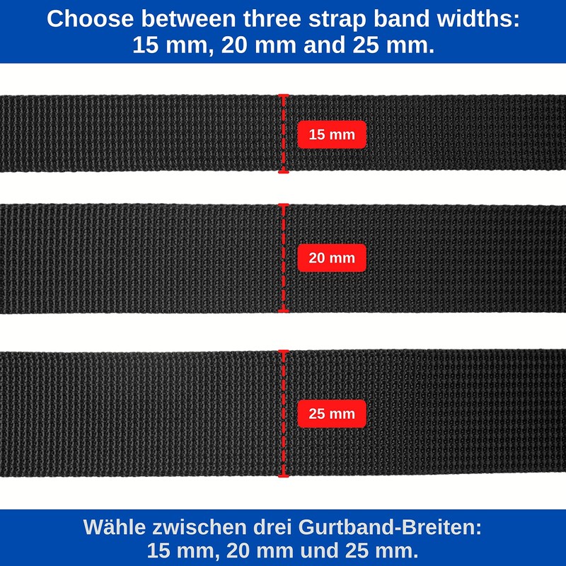 For this size of belt strap, buckle buckles with max. 25mm lug width required.