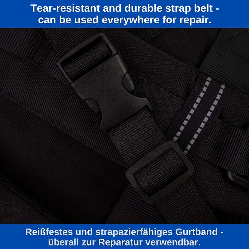 - Your strap is torn and needs to be replaced? With the help of this jet black replacement webbing, the bag strap is quickly repaired.