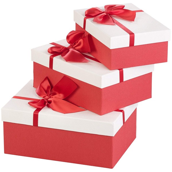 Your Design gift box: Set of 3 elegant gift boxes with red bow, 3 different sizes (gift box with bow)