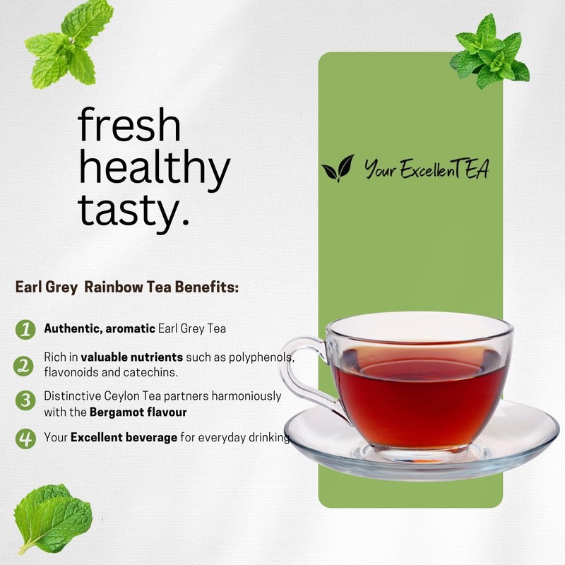 Your ExcellenTEA - Earl Grey RAINBOW - Black Loose Leaf Tea with Real Bergamot Oil in Resealable Pouch made from Ceylon BOP1 (100g)