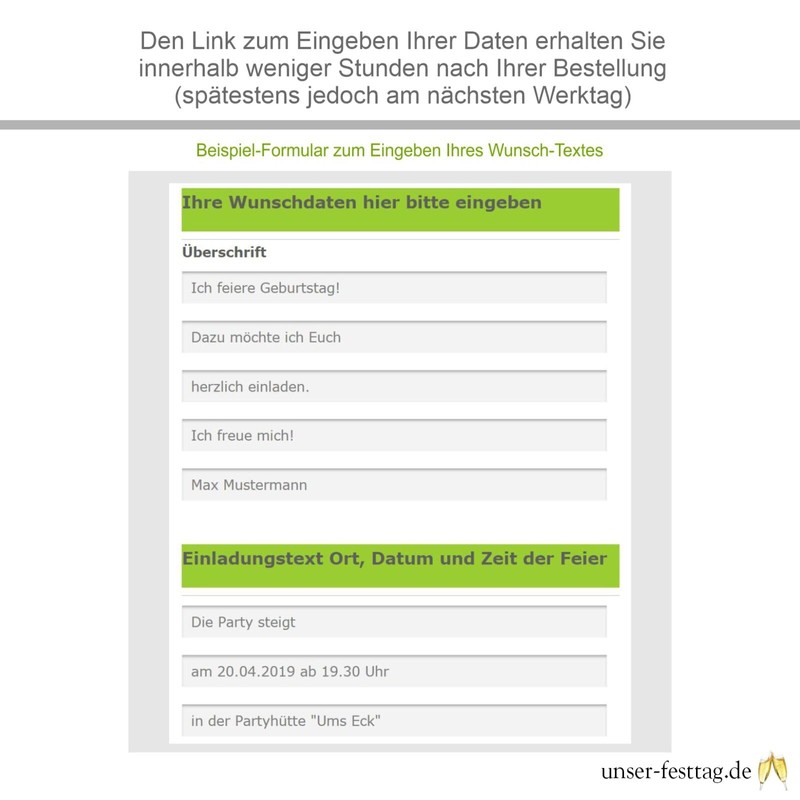 You will receive approx. 1 hour after your purchase a link to data entry.