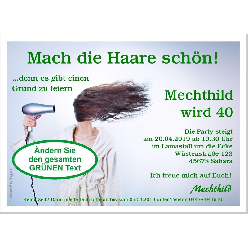 Individual invitation card with your desired text. The text that you can change is colour-coded on the product images