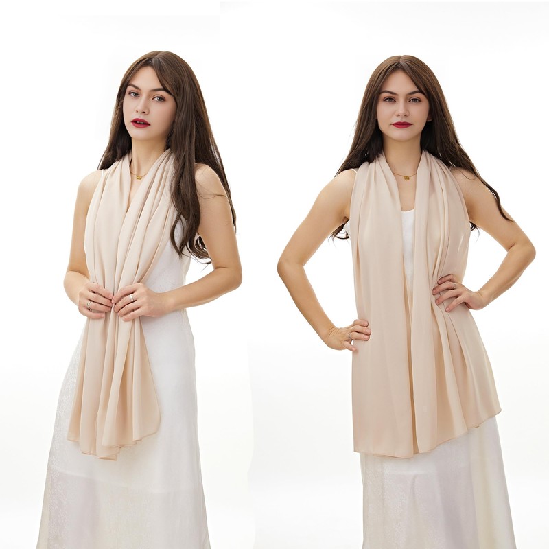 YOUR SMILE Bufandas largas de gasa para mujer, ligeras, transpirables, de color sólido, a prueba de sol, Beige, 27''x70''
