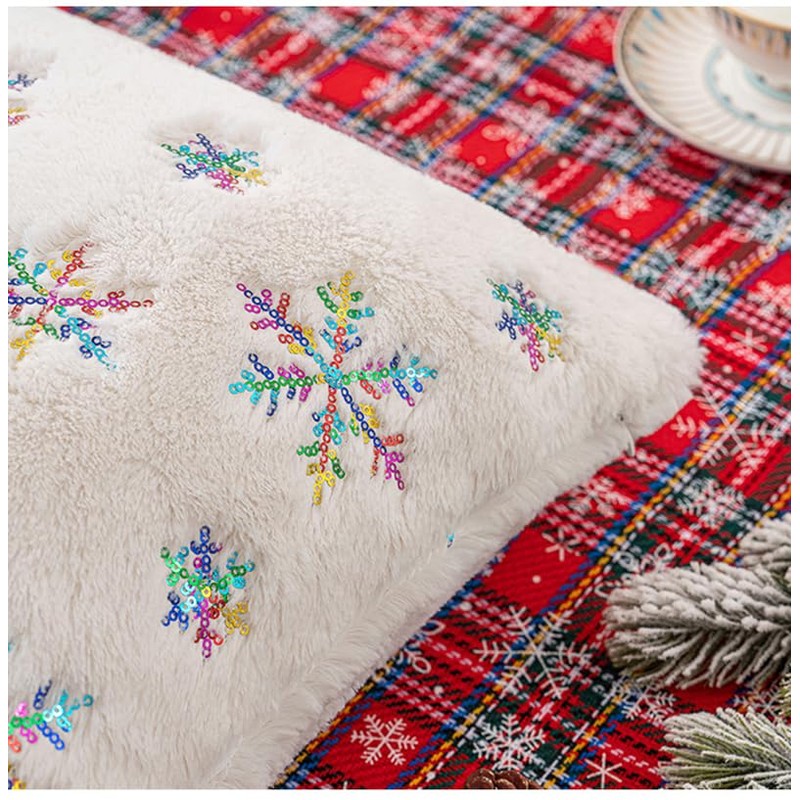 YOUR SMILE Set of 2 Farmhouse Christmas Snowflake Throw Pillow Covers Holiday Decor Soft Velvet Fur Plush Fuzzy Cushion Case for Winter Home Couch 18 X 18 inch,Cream White