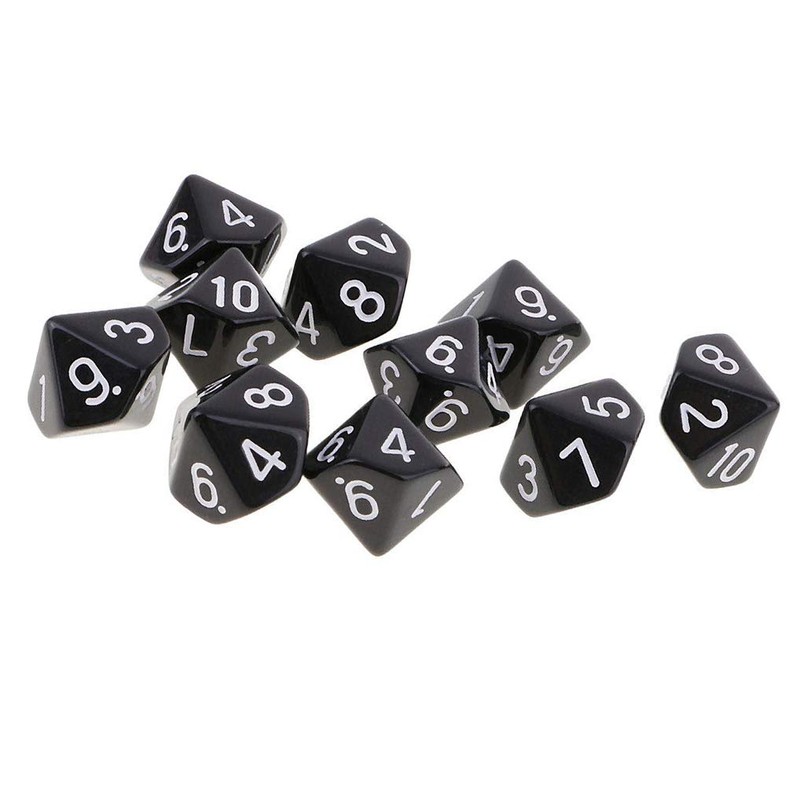 Yourandoll 10pcs Polyhedral Dice D10 Dice 10 Sided Dice for Dungeons and Dragons, DND, TRPG, MTG and More Table Games (Black)