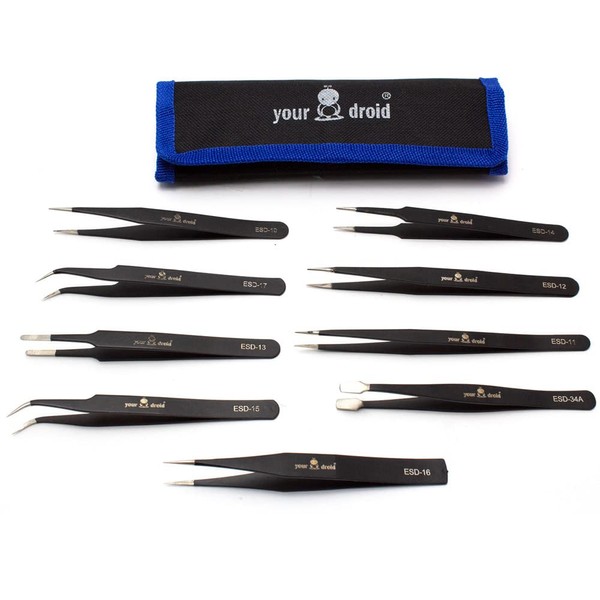 yourDroid ESD Tweezers Set 9 Pieces with Case