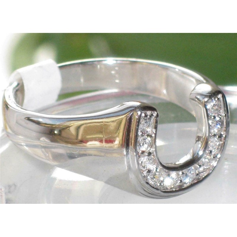 YourJewelleryBox HORSE SHOE SIMULATED DIAMOND RING MENS OR WOMENS STAINLESS STEEL TK10616 P
