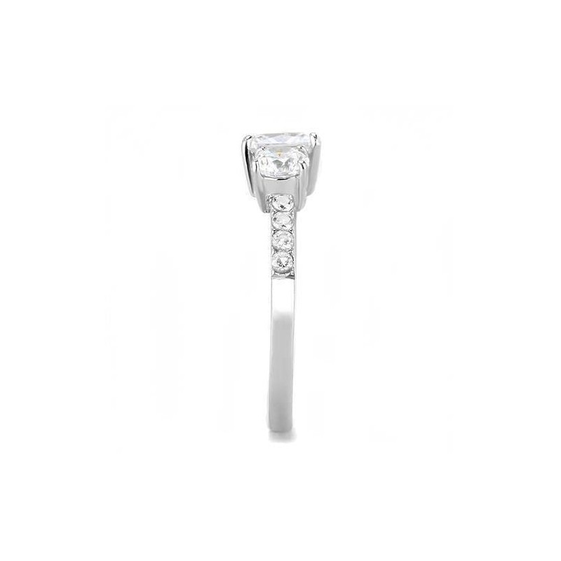 Yourjewellerybox Ladies Silver Ring Three Stone Princess Stainless Steel Simulated Diamonds 246 Size R
