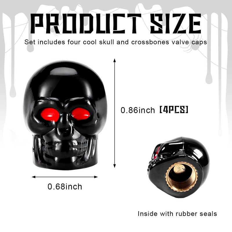 - 【Fashion Decoration】: The red-eyed skull style valve cap is brightly colored and striking. Use it to decorate car tires to give your car a stylish appearance. Decorating such a detailed place like the tire valve can better show off the car owner's personalized style.