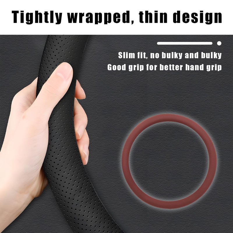- 【Breathable & Sweat-Proof】: It is designed with dense ventilation holes on the surface, which can avoid hand sweat and keep your hands dry. In this way, you don't have to worry about the steering wheel slipping easily due to sweaty hands while driving, which improves driving safety.